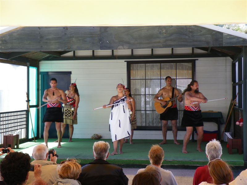 Prvni jsme navstivili maorskou termalni vesnici, ve ktere maori normalne bydli a provozuji vystoupeni pro verejnost, takova rodina akce, kdy matka rodiny zaroven moderuje a vystupuje a cela rodinka spolecne predvadi prostonarodni tance. Po 15 minutach bylo po vsem a nasledovalo foceni se s ucastniky, coz jsme pochopitelne vynechali (byt na fotce s chlapem co vyplazuje jazyk, brrrr) a vydali se na okruzni cestu za vesnici, kde se nachazeji ruzne formy geotermalni aktivity.