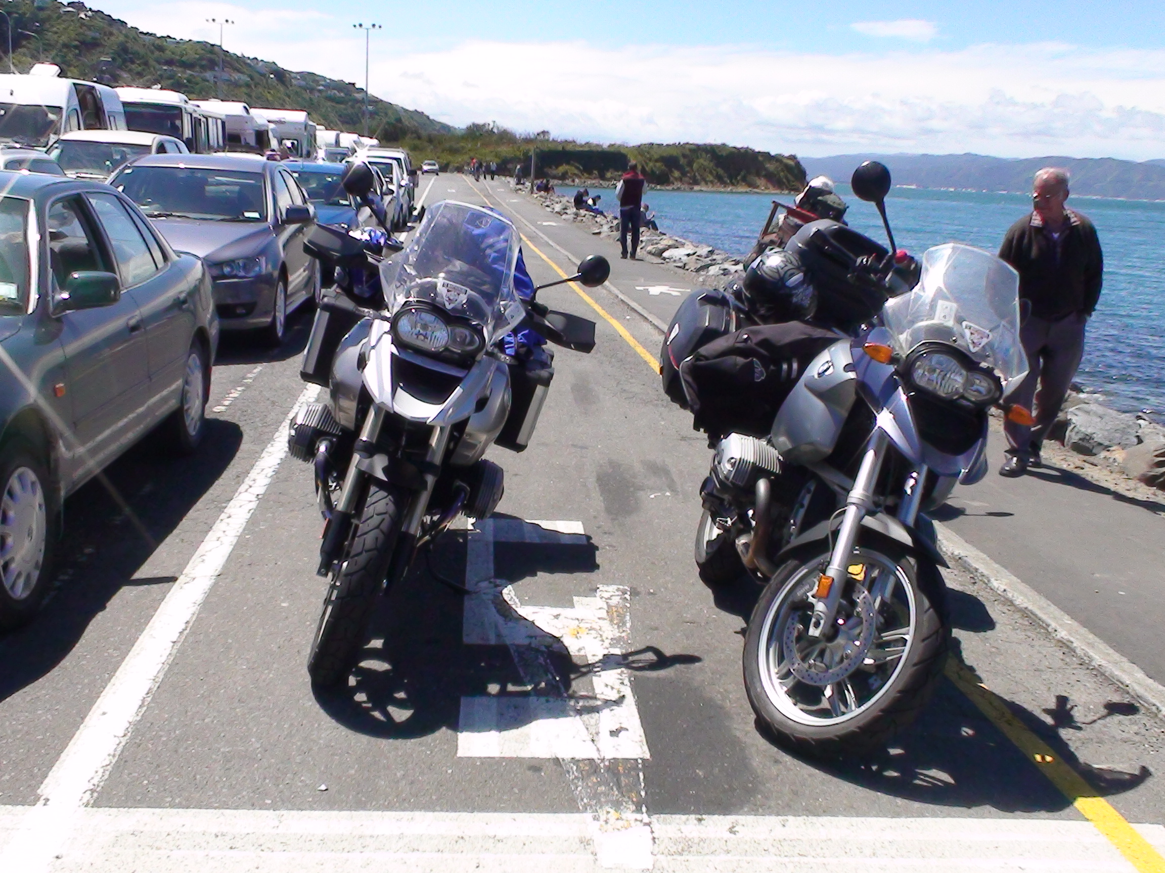 Na seradiste trajektu jsme prijeli mezi prvnimi a po chvilce jsme byli vpusteni do pate z peti rad, evidentne vyhrazene motorkam. Prohlidli jsme si cekarnu spolecnosti Interislander, zbastili sendvice a vratili se k motorkam. Za chvili se do naseho pruhu zaradila Kawasaki Ninja 650, ze ktere svizne seskocil starik, ktery nam v ramci konverzace prozradil, ze je z Anglie, je mu 75 let a jezdi NZ kazdy rok (pod stan), ale ze letos asi jede naposled, protoze ho nechce vzhledem k veku nikdo pojistit – to nam spadla celist.