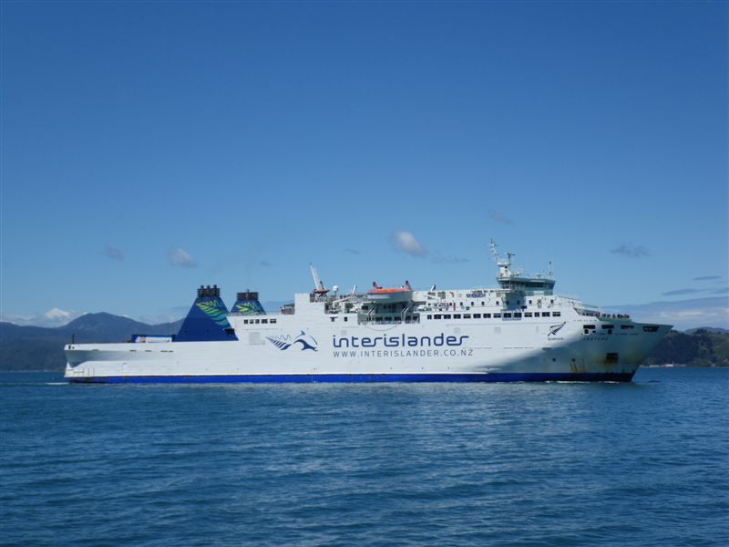Ale pekne poporadku. Sedime v utrobach rezave obludy, ktera spolu s nama a motorkama slupla desitku kamionu, dodavek, obytnych i osobnich vozu a jeden vlak si dala navdavkem a mirime za velmi neprizniveho pocasi do pristavu Picton, odkuz nas jeste ceka 160 km na motorkach do mesta Nelson. Protoze cesta trajektem ma trvat 3,5 hodiny a posadka kvuli pocasi nepovolila pobyt na cerstvem vzduchu, sedime uvnitr drzic se pevneho stolku, kymacime se zleva doprava a kratime si chvili psanim pro tento web (coz provozujeme na mobilech a podle toho to taky vypada :-)).