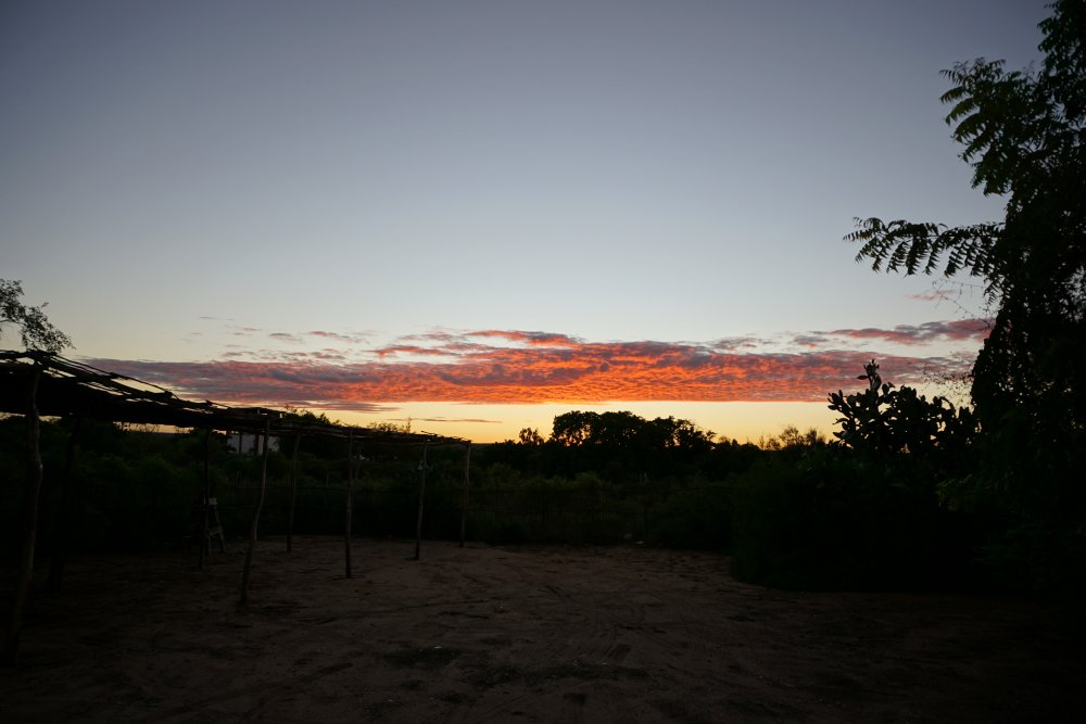 Romantické balení při svíčce. Batohu. Tak začal dnešní den. Všude tma a ticho, až na vzdálené kokrhání z blízké vesnice. Ani generátor si nebroukal svoji monotónní píseň, proto ta svíčka, která tam byla za tímto účelem připravená. Trochu neromanticky jsem k svíčce vytáhl i čelovku, abych viděl do všech koutů. V šest hodin už jsem stál na značkách a soukal se do našeho mikrobusu. Za obzorem začalo pomalu svítat. Mohu říct, že jsem zde viděl jak západ, tak východ slunce.