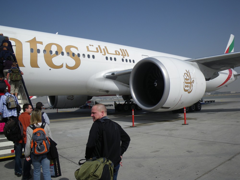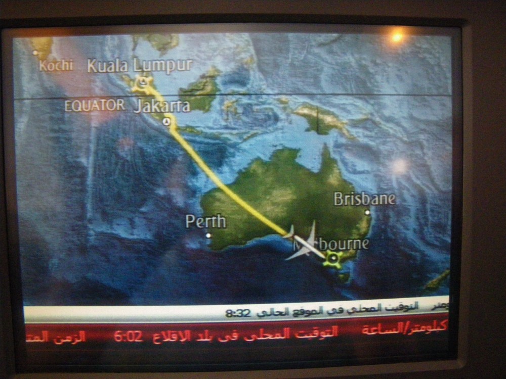 U odbavovací přepážky jsme požádali zástupkyni Fly Emirates, jestli je možné zabukovat dvojsedačku. Odpověděla, že do Dubaje máme místa již zarezervována a do Melbourne nám nějaké zabukovala sama. Říkame si, je to fajn, Karel to má pod kontrolou. Po celní kontrole, přišel na řadu rentgenový scan, Milan na poprvé prošel, aniž by něco vytahoval nebo snad zdělával pásek. To u mě to bylo „lepší“, sundal jsem vše kovové co jsem měl, a už jsem pípal, tak si mě tam celník pěkně objel a mohl jsem si jít vyzvednout věci k rentgenu. Minule to byly gumycuky, tentokrát se nelíbil externí zdroj. Uznávám vypadá to jako roznětka. Po vysvětlení o co se jedná jsme si sedli do malé „boardingové“ haly. Po chvíli slyšíme hlášení, že naše letadlo bude cca o půl hodiny opožděno. Což nám nikterak nevadilo, protože na letiště v Dubaji jsme měli 10 hodin. Po nastoupení do letadla Airbus 330, který má sedačky 2-4-2, jsme byli nepříjemně překvapení tím, že sice sedíme v dojsedačce, ale ta je přidělána k ještě jedné. Správně, byla to čtyřsedačka. Po šesti hodinách přistáváme skoro na čas v Dubaji. Je 0.35 místního času a prohlídka dubajského letiště mohla začít. Jedná se o moderní budovu, které má cca na délku 2 km a má 3 podlaží. Nakukovali jsme do obchodů, rozměnili jsme si dirhamy a trošku i zašopovali. Po nekonečných necelých 10 hodinách se vydáváme na „svůj“ gate, který byl, alespoň podle nás ve staré budově, která sice měla koberec místo všudypřítomného mramoru, ale nějak tam chyběl dostatečný počet sedaček. Přes umělou zaměstnanost, která spočívá v tom, že na pas a letenku vám koukne asi 5 lidí, jsme se ocitli na runvaji, na které jsme nasedli do autobusu a ten nás vezl kdovíkam. Po cca 5 minutách jízdy, na odlehlé stojánce jsme se nalodili do Boeingu 777-500 a jak jsme se těšili na 4motorák, tak jsme si mohli nechat zajít chuť. Překvapení se opět nekonalo, seděli jsme opět na 4sedaččce, což nevadilo, protože tento Boeing má rozložení 3-4-3. Já jsem seděl do uličky a mám pocit, že mám vážně široká ramena, neboť když kolem šla obsluha tak do mě vždycky drbla, což na spánku moc nepřidá. Dalších 6 hodin letu a čekal nás technický stop v Kuala Lumpur. V letadle nám vysvětlili, že si máme vzít věci a jít na gate 22. Podle tabule technický stop měl trvat 1 hodinu, větší vtip jsme už dlouho neslyšeli. Pro letadlo, kde je nějakých 300 lidí fungoval jeden rentgen a jedna paní za přepážkou nám čísla sedadel na letenkách přeškrtla. Jak Milan poznamenal, že jaké místo si vybojujeme takové budeme mít. Zde bych rád ještě zmínil jací jsou Malajci kouzelníci. Milan vyskládal, tentokrát všechny kovové věci, včetně hodinek do boxu a než projel rentgenem, tak hodinky zmizeli. Se slovy jestli se nenajdou, tak mě žena zabije, vysvětloval Malajcům, že mu zmizeli hodinky. Ti na sebe nejprve nevěřícně koukali, pak se koukli do boxů a když tam nic nenašli, považovali věc za vyřízenou. Naštěstí se hodinky objevili, jak leží na zemi, jak se tam dostali ………….. Přes optimistický čas jedné hodiny jsme letěli za dvě. A to už nás čekalo „pouze“ 8 hodin letu.