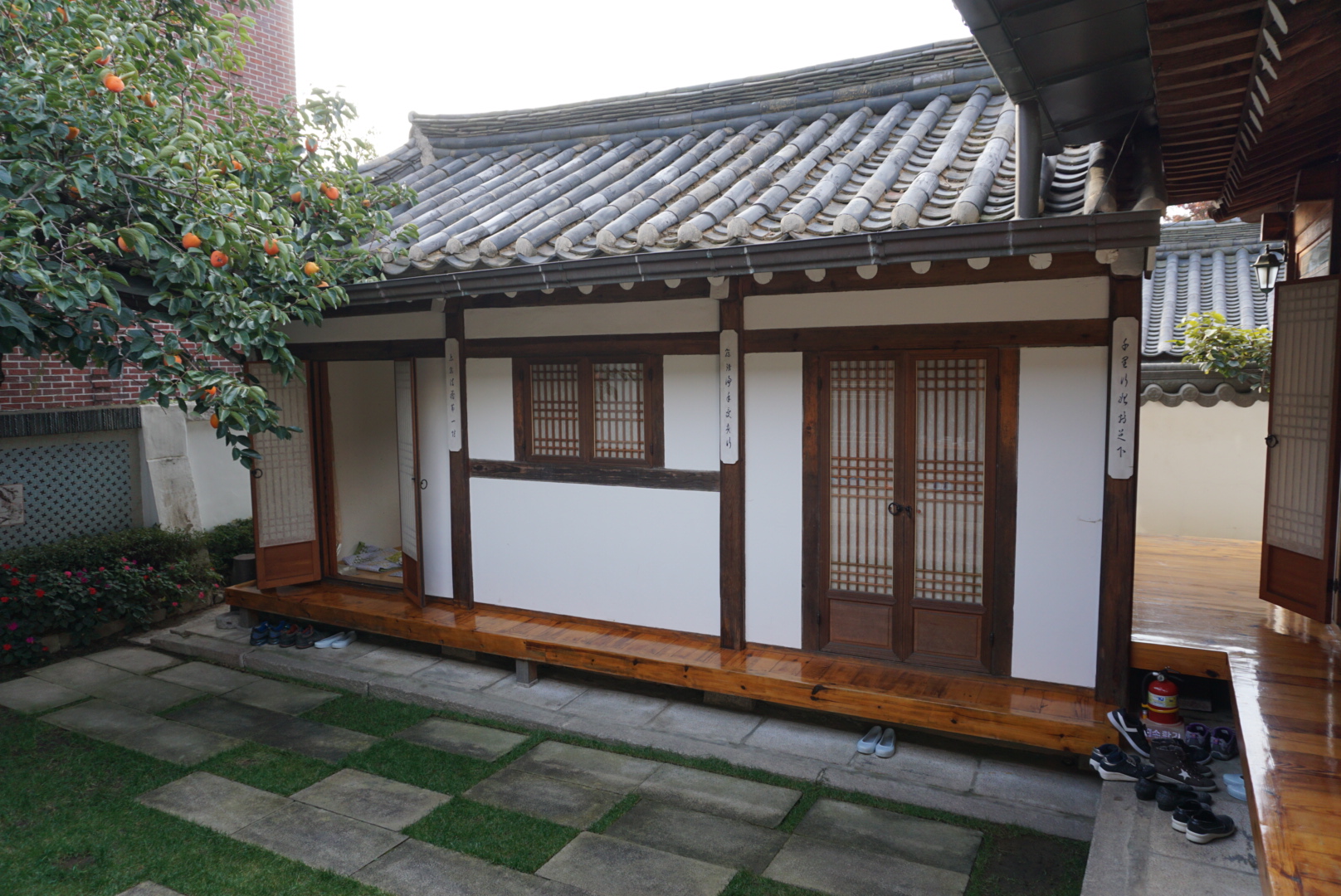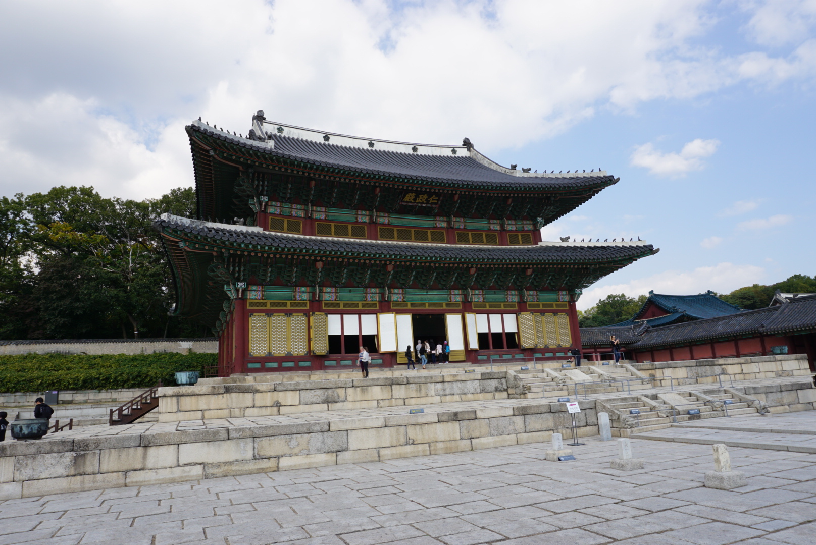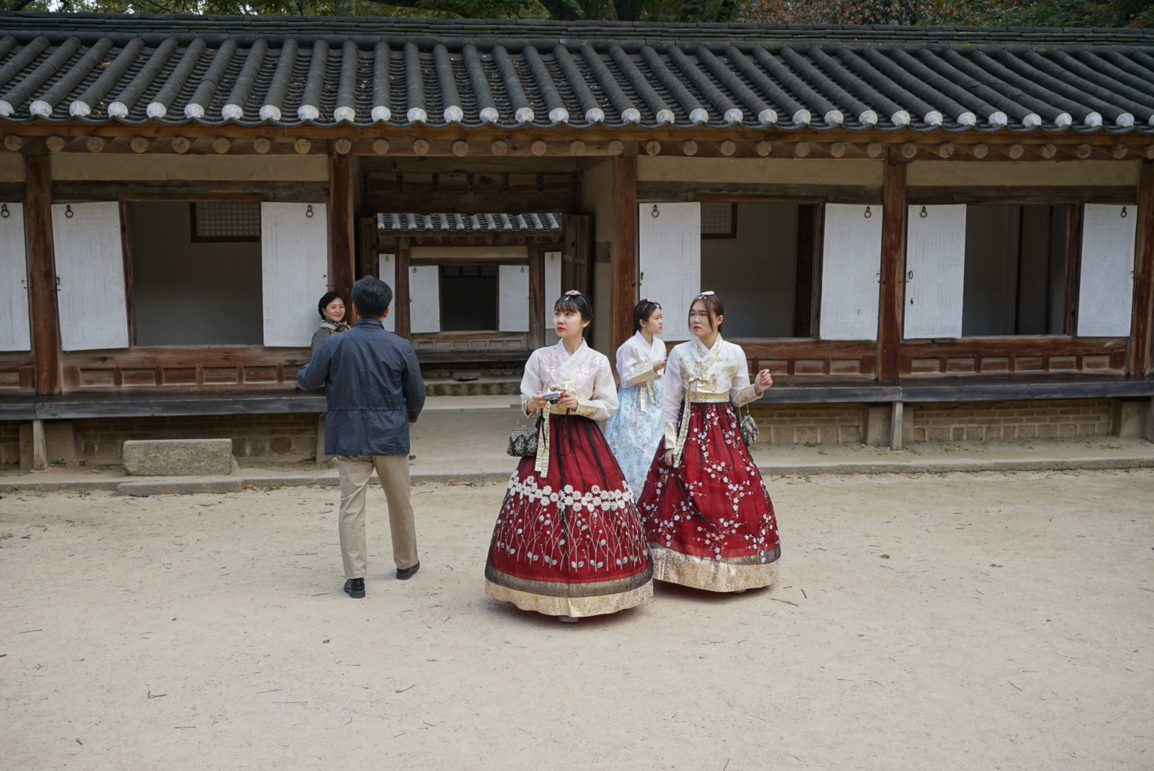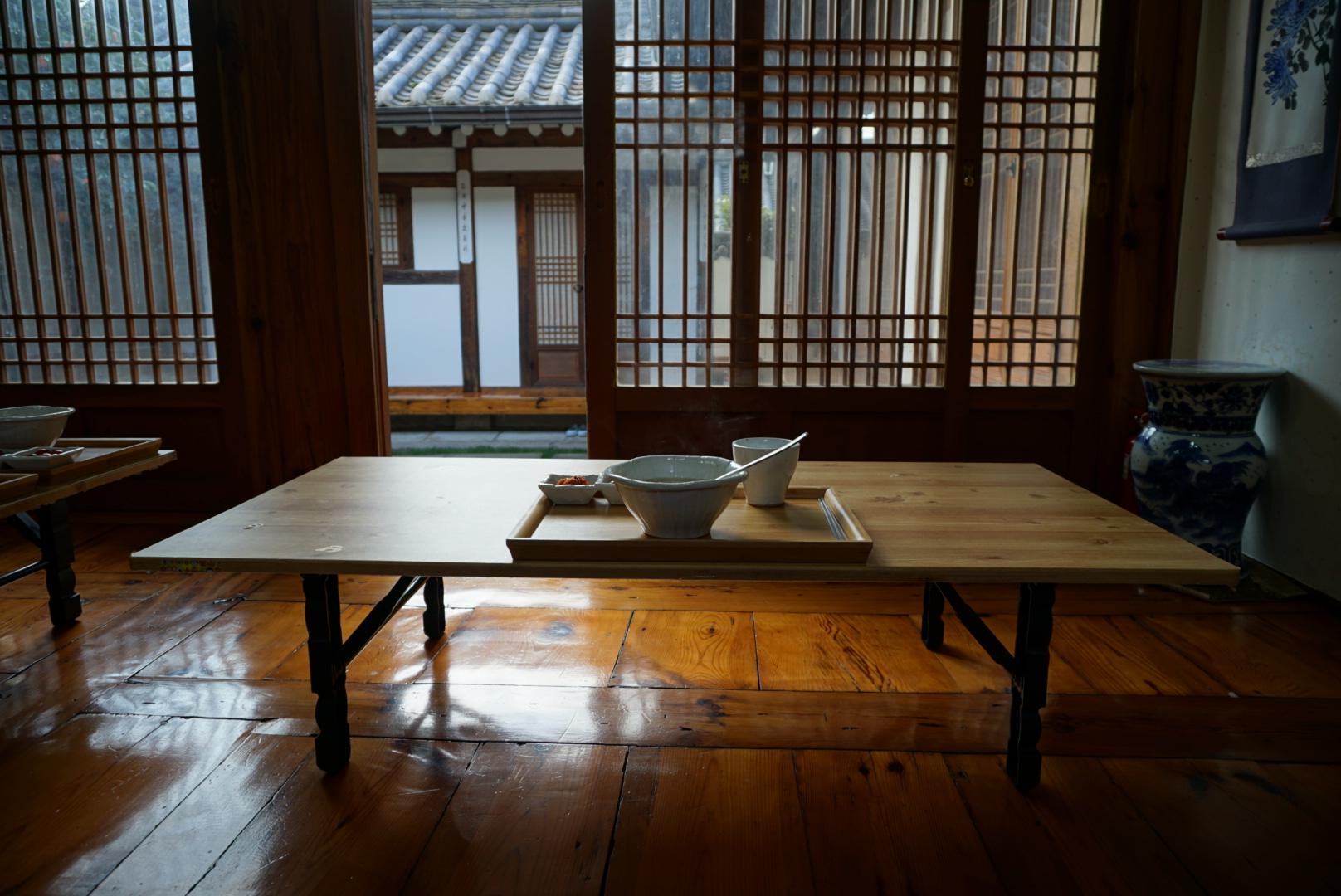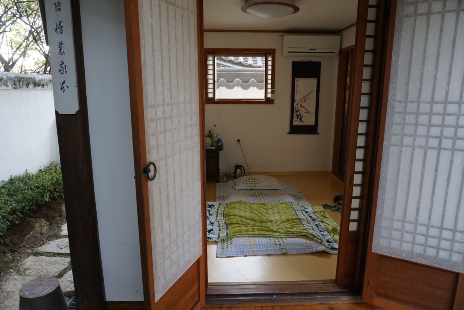 Netušil jsem ani, že mé ubytování je na tak strategickém místě. Top one ve většině bedekrů je královský palác Gyeongbokgung, který je hned za rohem. Předtím než ho navštěvuji, dělám si procházku do parku, kde je možné vidět městské opevnění. Také zde zapichuji geocachingový špendlík do své mapy. Populární je zde i část zvaná Bukchon Hanok. Jedná se o stylové Korejské domy a zde jsem byl ubytovaný. Nedaleko je i market, kde jsou různé stánky se vším možným a také street food. Dá se ochutnat spoustu zajímavého.