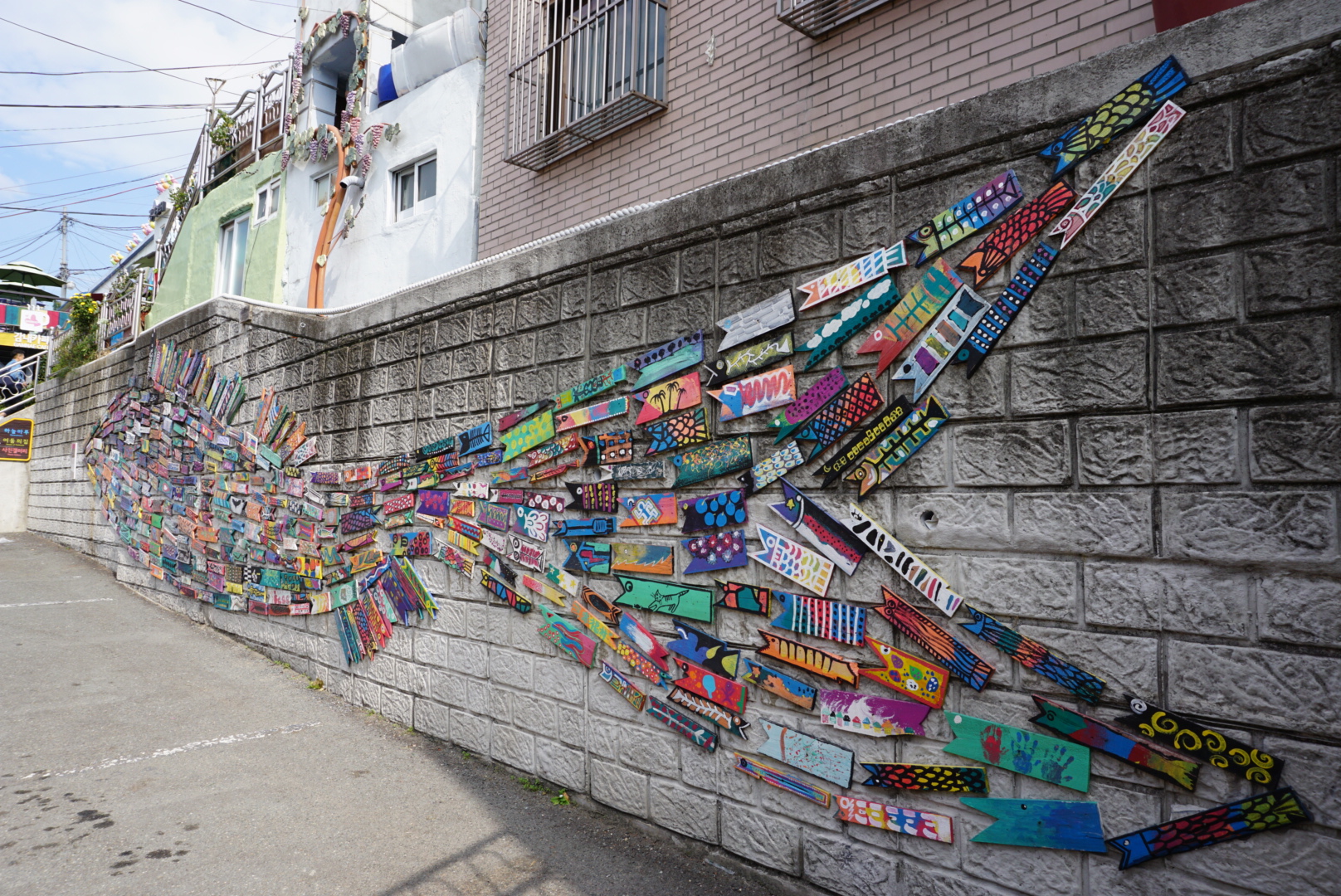 Další den si kupuji denní jízdenku a mířím do Gamcheon culture village. Jedná se o barevné domky, které jsou postaveny v kopci. Mezi nimi jsou úzké uličky. Ideální místo pro hraní na schovku. V některých domech se nachází i různé expozice.