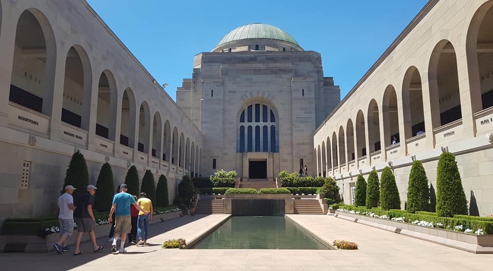 Následoval rychlý přesun necelých pět kilometrů na opačný konec grandiózního bulváru k War memorial, kde jsme napřed s úctou a pokorou obdivovali Roll of honor – seznam všech jmen australských padlých vojáků od roku 1885 až po rok 2006 – a pak jsme se vydali do nenápadně vypadající expozice válek, kterých se australští vojáci zúčastnili, ze které se vyklubala ohromná záležitost o několika patrech věnovaných prvním konfliktům, první a druhé světové válce, a všem dalším celosvětovým konfliktům. V muzeu jsme strávili dvě a půl hodiny a pak se jeli ubytovat do Pavilion on Northbourne Hotelu. Nemělo smysl se dále snažit navštívit další a další expozice Canberry, protože v Austrálii se vše státní zavírá v 17:00, a muzea jsou tu vesměs ve správě státu.