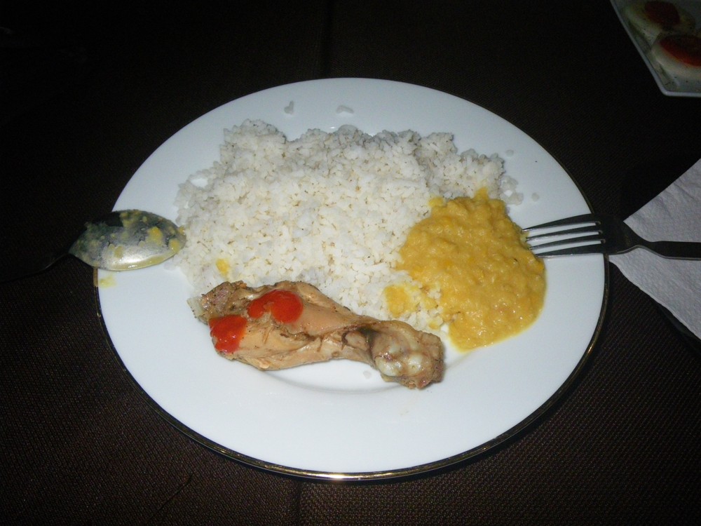 Za hustého deště a tmy dorážíme v sedm hodin na ubytování. Už na nás čekali s večeří, bylo to kuře s rýží plus ovoce. A teď už jen na kuťe a zítra se projedeme po okolí.