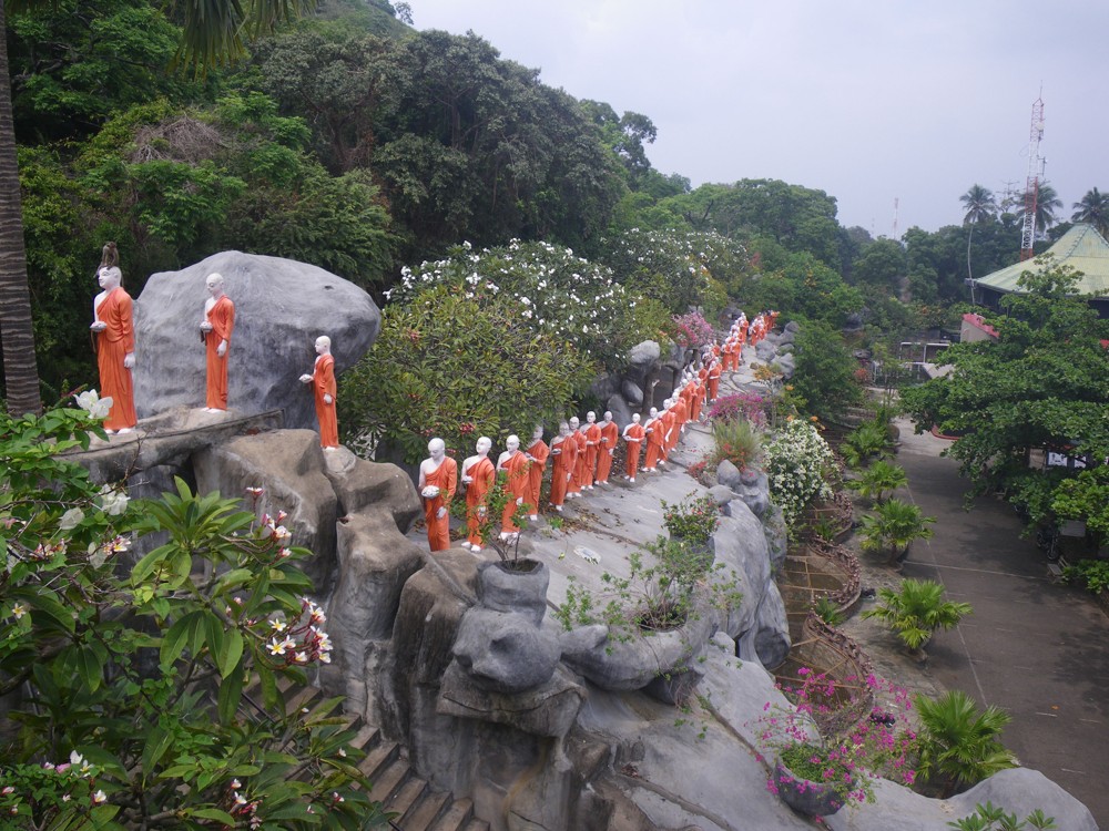 Další zastávka nás čeká Dambulla, kde je Golden temple. Jedná se o moderní chrám, na jehož střeše sedí nejvyšší Budha na světě a výstavbu sponzorovalo Japonsko. My ho však nenavštěvujeme, platíme 1.500 rupií a stoupáme po 200 schodech podle bedekru, podle Dušana, který je počítal, necelých 400, na vrchol, kde jsou opět modlitební místnosti s Budhou. Procházíme se areálem, a když všude nakoukneme, scházíme opět dolů.