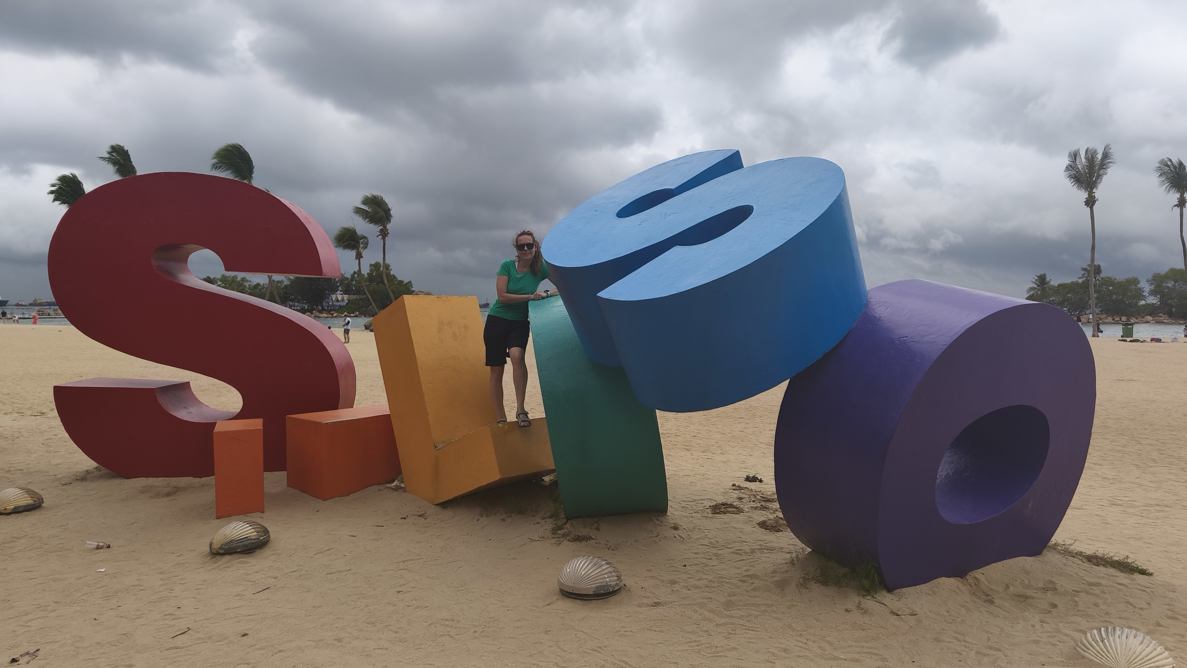Padáme z lanovky Mount Faber Line z 88 metrů do finální stanice Sentosa, 45 metrů nad mořem, odkud kolem muzea Madame Tussauds, kde jsou hlavně asijské celeblitky, které nám stejně nic neříkají, nastupujeme na vnitroostrovní lanovku Sentosa Line, konkrétně na stanici Imbiah Lookout a jedeme směrem na západ do následující a zároveň konečné stanice Siloso point. Z té se jdeme podívat na místní pláže, vítr sílí a začíná hřmít. Přesouváme se do plážové restaurace Trapizza, že počkáme, jak se počasí vyvrbí a dáme si pivo. Usadí nás a odkáží na samoobjednávací systém přes QR kód a telefon. Maki začne objednávat dvě piva, každé za 18 dolarů a když udělá souhrn objednávky, přidá se manipulační poplatek a odvod daně státu. Dvě piva za 43 dolarů, se asi posr.li, ne? Tak nebudem za trapáky, už jsme si objednali, tak to nějak přežijeme. Po deseti minutách se nic nedělo, tak si říkáme, že za takový peníze to pivko měli donést v nachlazených sklenicích a zlatém podnose do minuty po objednání. Maki to kontroluje a hele, ona tu objednávku nepotvrdila. Balíme, protože nás stejně sílící déšť vyhání z plážového baru a končíme na stanici lanovky, kde Maki kupuje dvě v plechovce po 7 singapurských dolarech a schováváme se před deštěm. Než došlo pivo, bylo po slejváku a mohli jsme vyrazit dobýt pevnost.