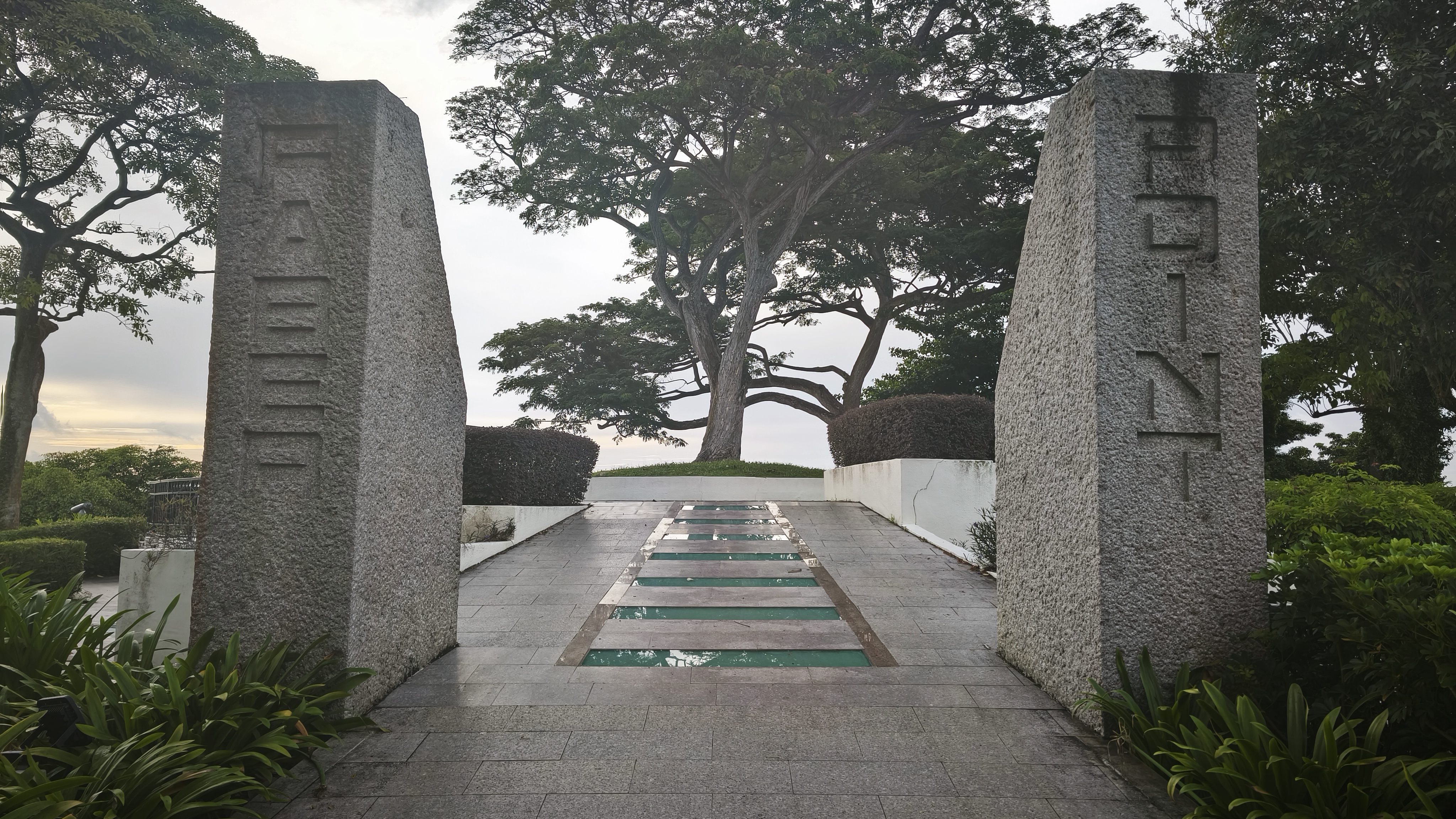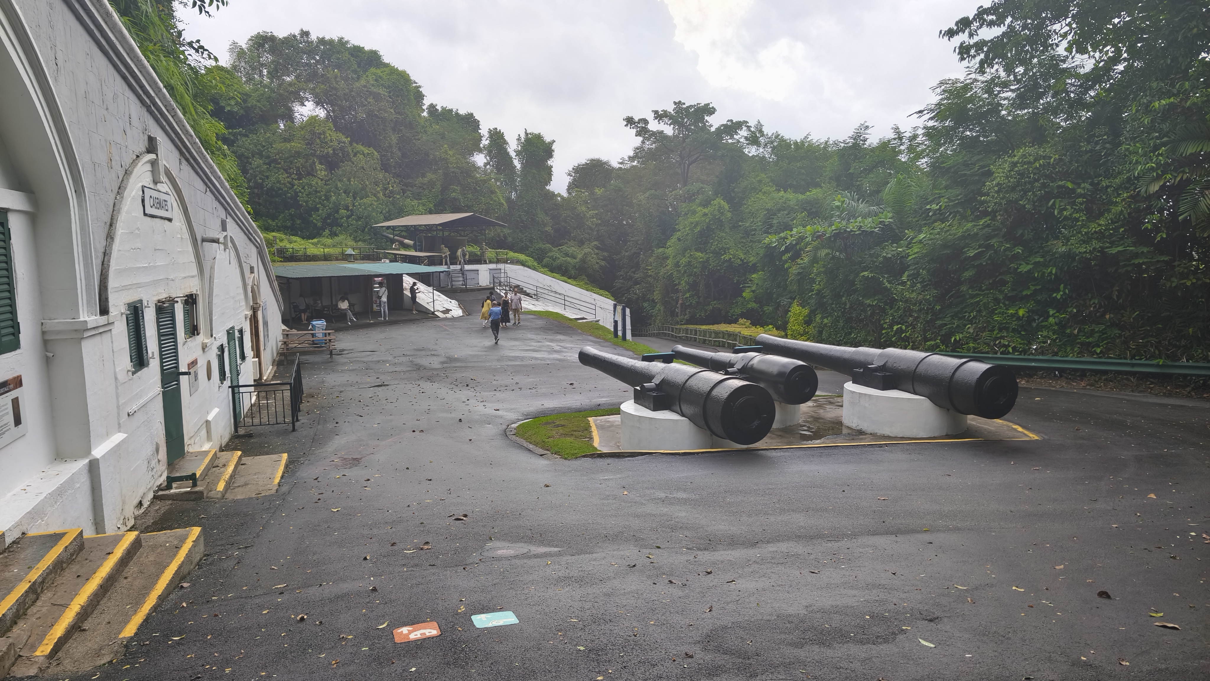 K čemu a jak moc sloužila pevnost Siloso je možné se dočíst na těch internetech, za nás to bylo zajímavé tím, jak prohlídka začala. A tady malá odbočka. Nechci házet obyvatele Singapuru do jednoho pytle, ale mají to tady zařízené tak, že kde jsou třeba schody, mají k nim alternativu v podobě jezdících schodů, a když už to náhodou nejde, tak mají k dispozici výtah. Oni prostě do a ze schodů nechodí. Nakonec stejně nedělají nic jiného, než že všichni a všude čučí do mobilů a u toho by jim schody po svých asi překážely. Plusem ale je, že na ostrově jejich pohodlnost, ale asi hlavně kvůli dešti, dospěla tak daleko, že vyjma pláží se dá v podstatě všude pohybovat i za deště, důsledným různorodým zastřešením většiny cest. A zpět k začátku dobývání Fort Siloso. Místo chození do kopce, jasně, pevnost v kopci, jak jinak, si zavoláte výtah, kterým vyjedete do 11. patra a vystoupíte na stezce směrem k pevnosti bez nutnosti zdolat jediný výškový metr. Po 180 metrech dojdete po lávce až k pevnosti. Ta je docela zachovalá a je možné ji projít po povrchu, nebo tunely, které spojovaly jednotlivé části pevnosti a sloužily k přepravě lidí a munice. Tady už i líný obyvatel Singapuru musí z kopce a po schodech. Prohlídka pevnosti je doplněna originálním audio doprovodem a výjevy ze života vojáků za pomocí figurín v životní velikosti. V bývalé ubytovně vojáků je úžasně zrekonstruovaná historická událost, kapitulace Japonska za 2. světové války, včetně figurín všech zúčastněných v životní velikosti. Užíváme si prohlídky a zpátky jdeme příjezdovou cestou k pevnosti, tedy z kopce dolů a tlampače hlásí, ať si najdeme úkryt před blesky z přicházející bouřky.