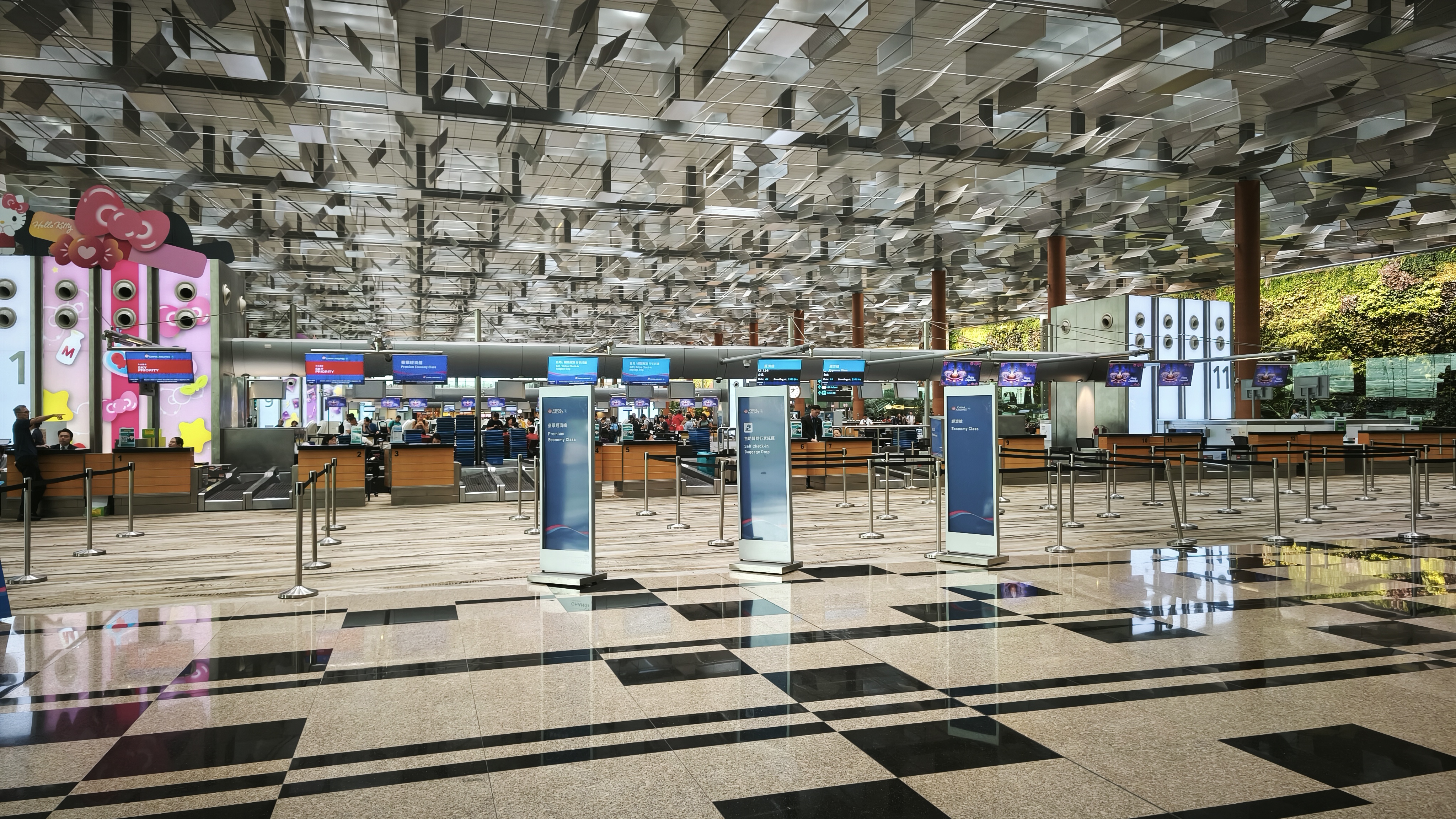 Dnes je to o přesunu na Taiwan. Ráno nenecháváme nic náhodě, a jdeme na jistotu na snídani do Subway. V zásadě to stejné co kdekoliv jinde, jen to pečivo tu neumějí, tedy umějí ale jinak, všechno je z kynutého těsta. A tak snídáme a kyneme, dorazíme to cookies a kávou a vracíme se do hotelu, kde zabalíme a naposledy sjedeme z 11. patra do přízemí hotelu, check-out a hurá na metro. Po hodině vystupujeme na letišti Changi u terminálu 3, což se nám hodí, protože právě z něho odlétáme. Hned na začátku terminálu je odbavovací řada 11, ve které operuje China Airlines, kde nás ihned odbaví, tak že se zbavujeme svých objemných batohů a nalehko jen s palubními lístky vyrážíme za posledním cílem v Singapuru.
