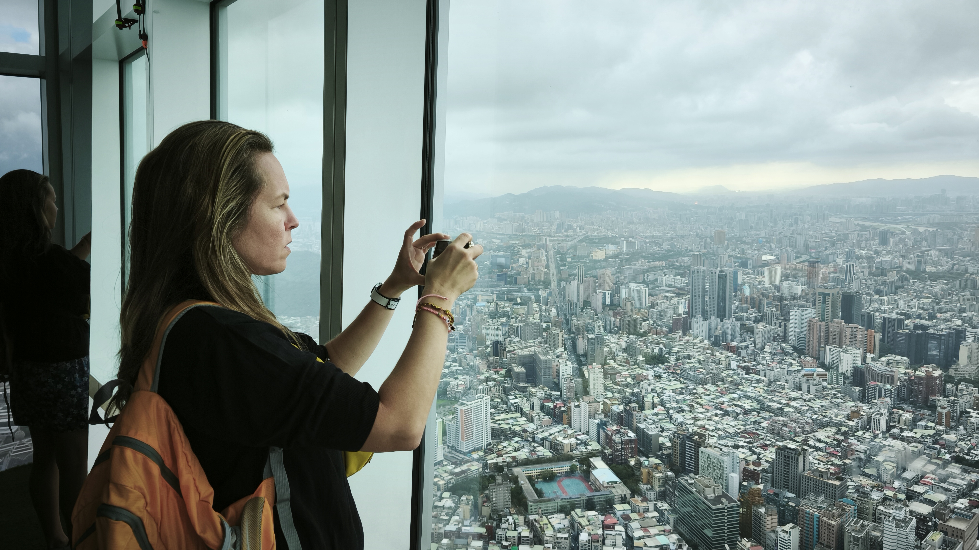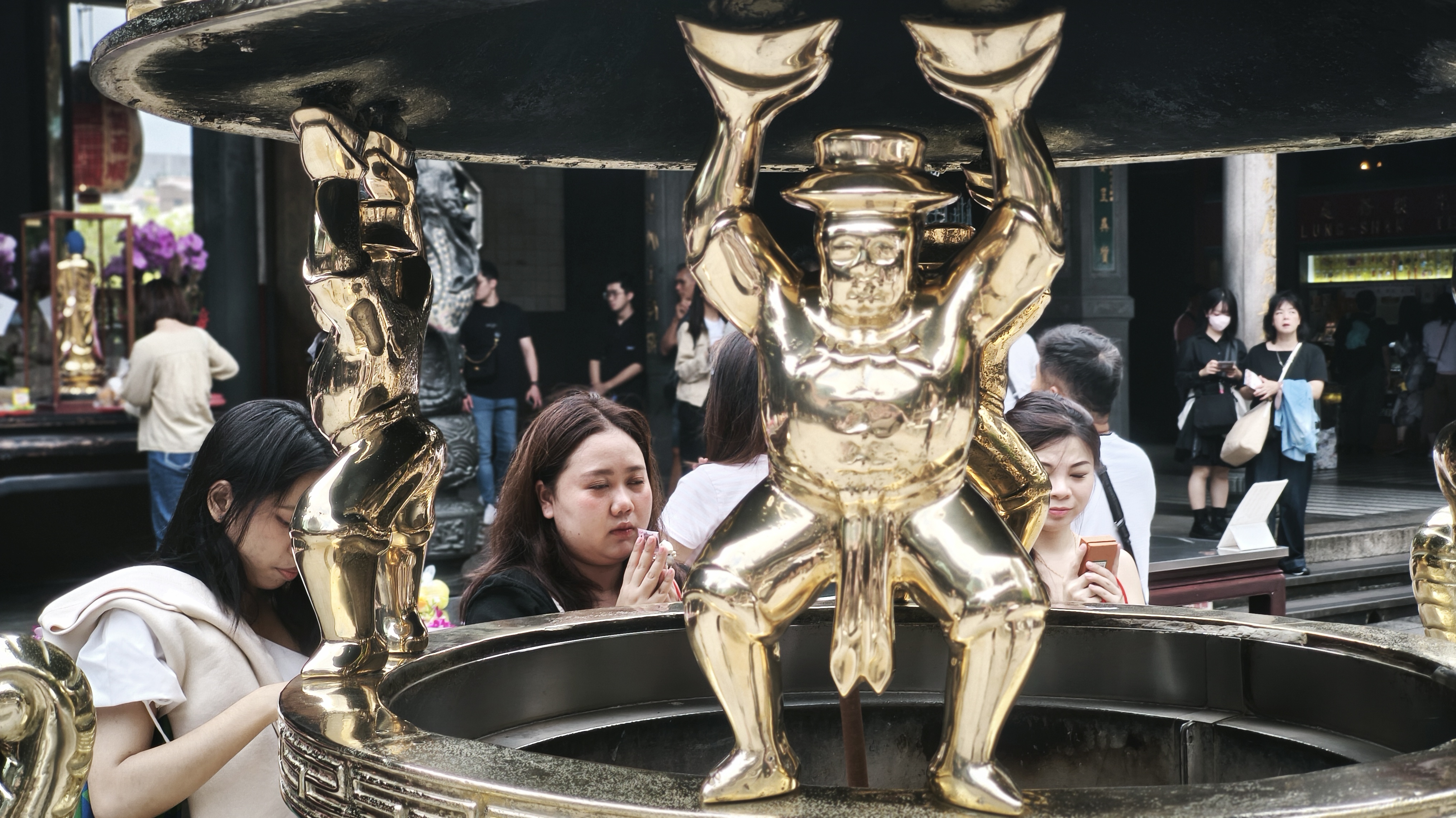 Poslední chrám, který navštěvujeme, je jiná liga. Je součástí Bangka parku, a je obehnaný zdí, má honosný vstup, doplněný z jedné strany jezírkem se zlatou sochou draka, z druhé strany umělými vodopády. Jeho plocha je několikanásobně větší, než jsme zatím viděli a i počet lidí, který chrám navštěvují je až odrazující, stejně tak počet modlících. Jedná se o čínský lidový náboženský chrám Longshan z roku 1783 a jako většina takto starých byl přestavěn za japonské nadvlády. Za druhé světové to koupil a po válce byl restaurován. Evidentně je tento skvost pro místní důležitý, a tak tiše sledujeme cvrkot kolem chrámu, vyrábíme datové soubory a pro dnešek končíme s lovem chrámů. V nejbližší stanici metra, jak jinak než Longshan Temple, mizíme pod zem a spletitou cestou přestupů míříme k nejvyšší budově na ostrově.